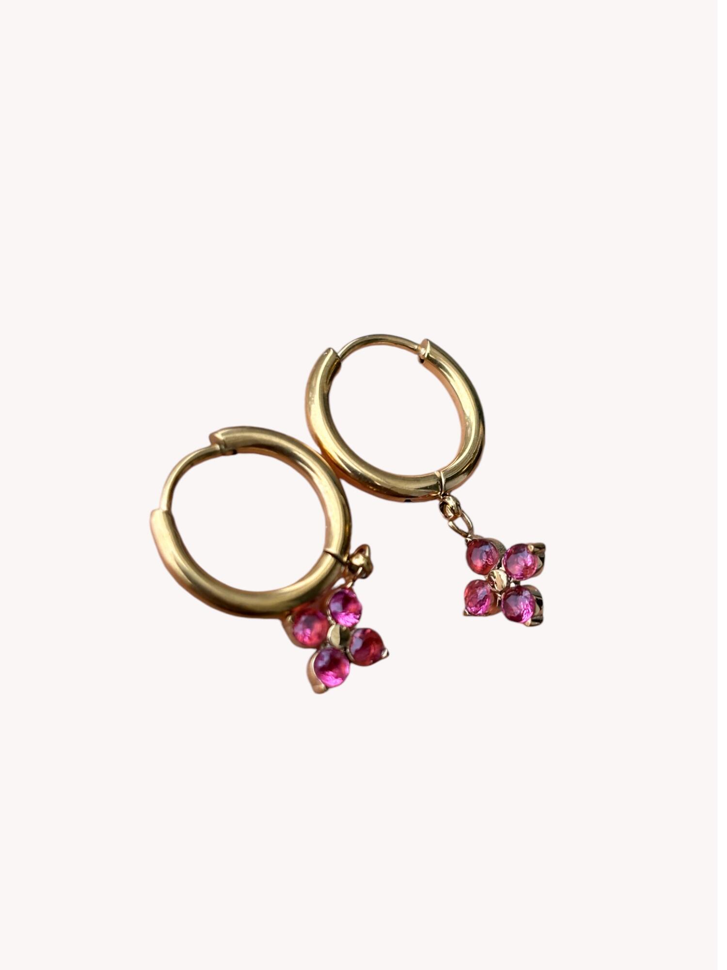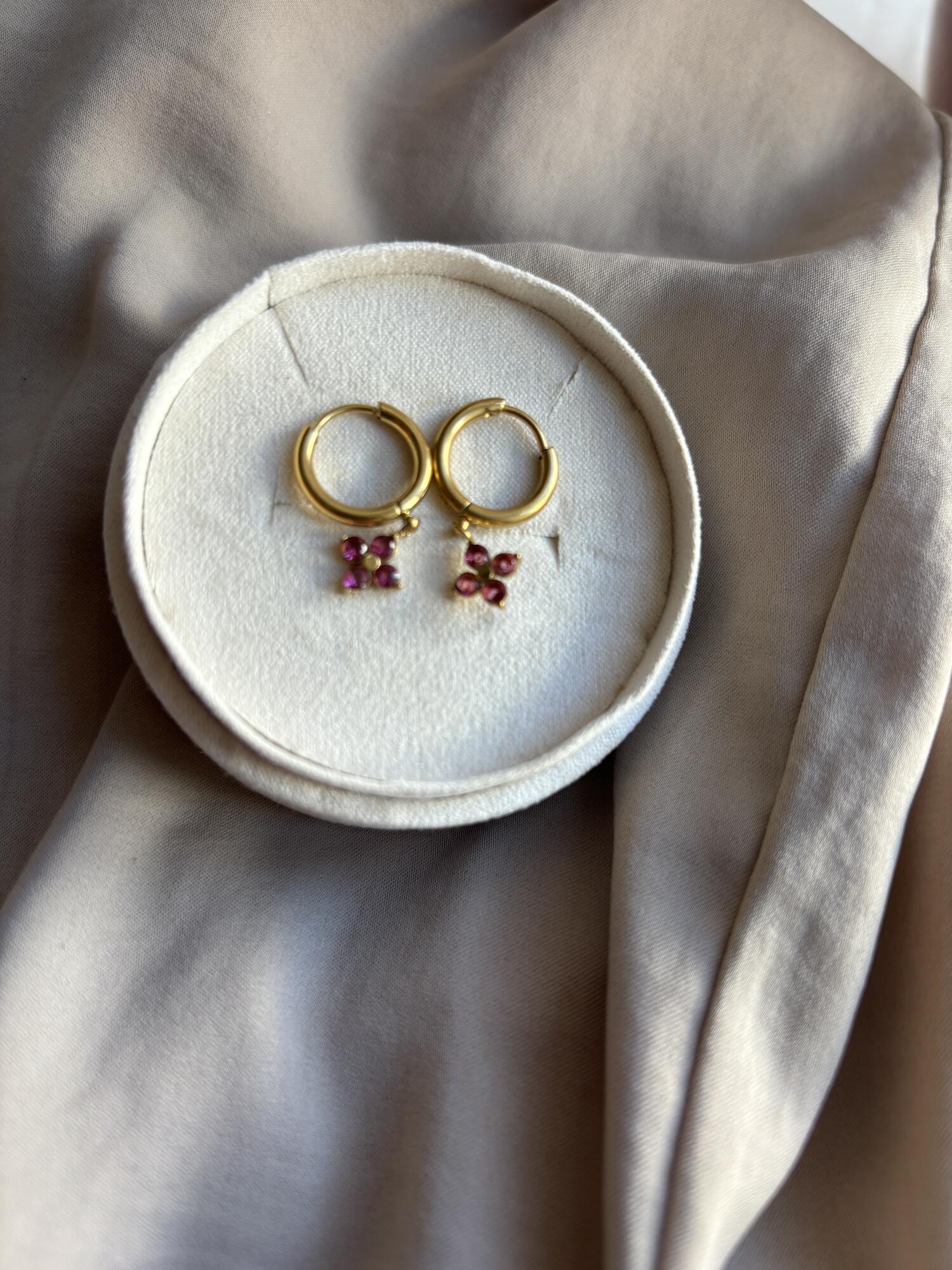 Smukke små hoops med bordeaux vedhæng