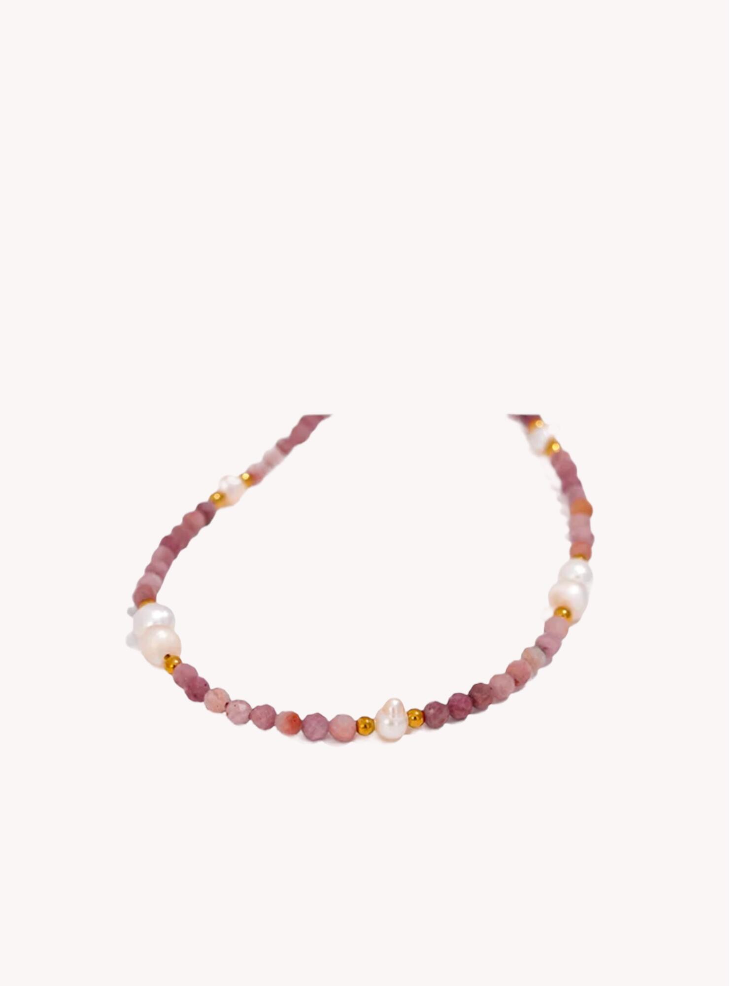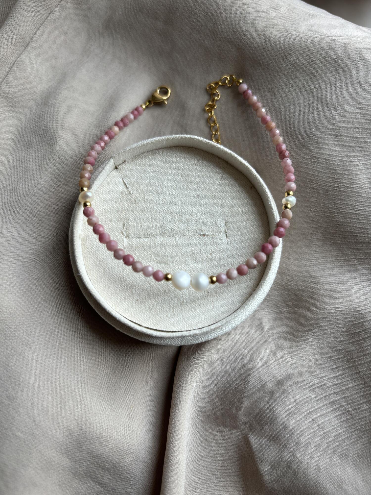 Smuk ankelkæde med rosa sten og ferskvandsperler